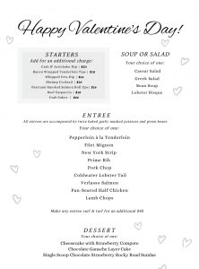 Valentine’s Day Weekend – $85 Prix Fixe Menu